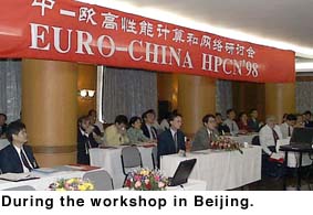 The Chinese workshop was held in Beijing in October 1998. It started with presentations of the participating European companies, the Technology Transfer Network (TTN), a European initiative for technology transfer in the HPCN sector funded by the Esprit Programme of the European Union, and the ten selected Chinese institutions. After the presentations, the Chinese participants could discuss issues directly with the European representatives. An immediate positive result from this initiative was the contact established between different companies and institutions from Europe and China.